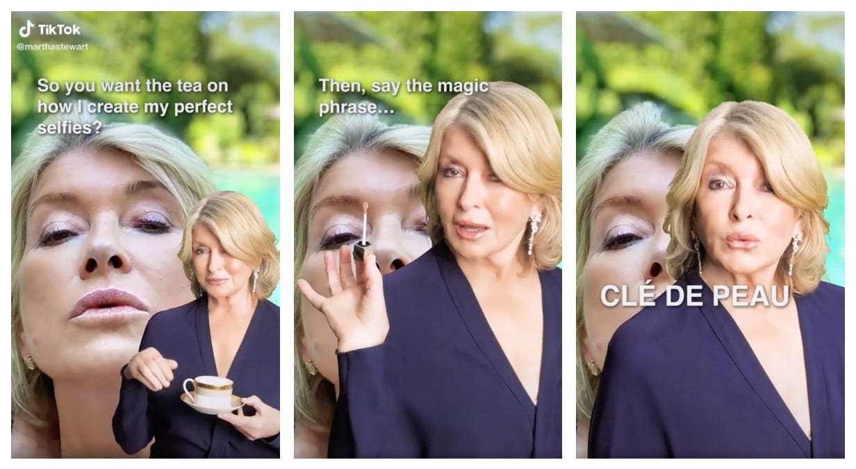 “Martha Stewart Welcomes You To Generation Ageless,” declared a New York Times headline late last month; underneath, a 2,000-word analysis of the 80-year-old’s foray into beauty influencing. The lifestyle entrepreneur is a newly appointed ambassador for luxury skincare brand Clé de Peau Beauté. As for what that entails? Convincing Gen Zers on TikTok to drop $550 on an anti-aging moisturizer, mostly.