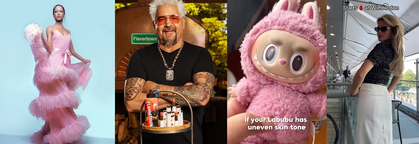 Today we’re talking about: Our new book club!, period blood as a fashion statement (or protest) [4:55], Kim Kardashian’s Elizabeth Taylor cosplay [10:45], Revlon’s inane lip gloss collab with Guy Fieri [19:26], the panopticon of surveillance culture by way of the Coldplay cheating scandal [26:30], heat damage is the hot new hair trend [38:30], Hailey Bieber’s perioral dermatitis [42:10], The Battle of Versailles’ impact on the modeling industry [47:25], Labubu as the embodiment of Sianne Ngai’s aesthetic theory of cuteness [59:00], Schiaparelli’s unsettling beating heart dress [1:13:38], and frozen cod as skincare [1:20:35]. Plus more!